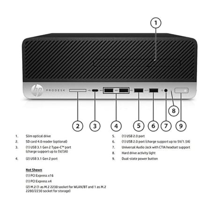 Core Specifications: Intel Core i5-9500 Processor ; Memory Size: 16 GB DDR4 ; Storage: 256 GB, S12 IT SSD ; Windows 10 Pro ; HP Keyboard and Mouse
